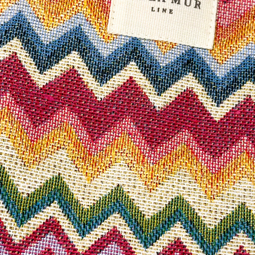 Große Shopper-Tasche mit Schulterriemen. Aus dickem Jacquard-Stoff mit Zickzack-Muster in rosa und blauen Tönen. Für eine korrekte Wartung ist es ratsam, es kalt mit der Hand zu waschen und nicht im Trockner zu trocknen.