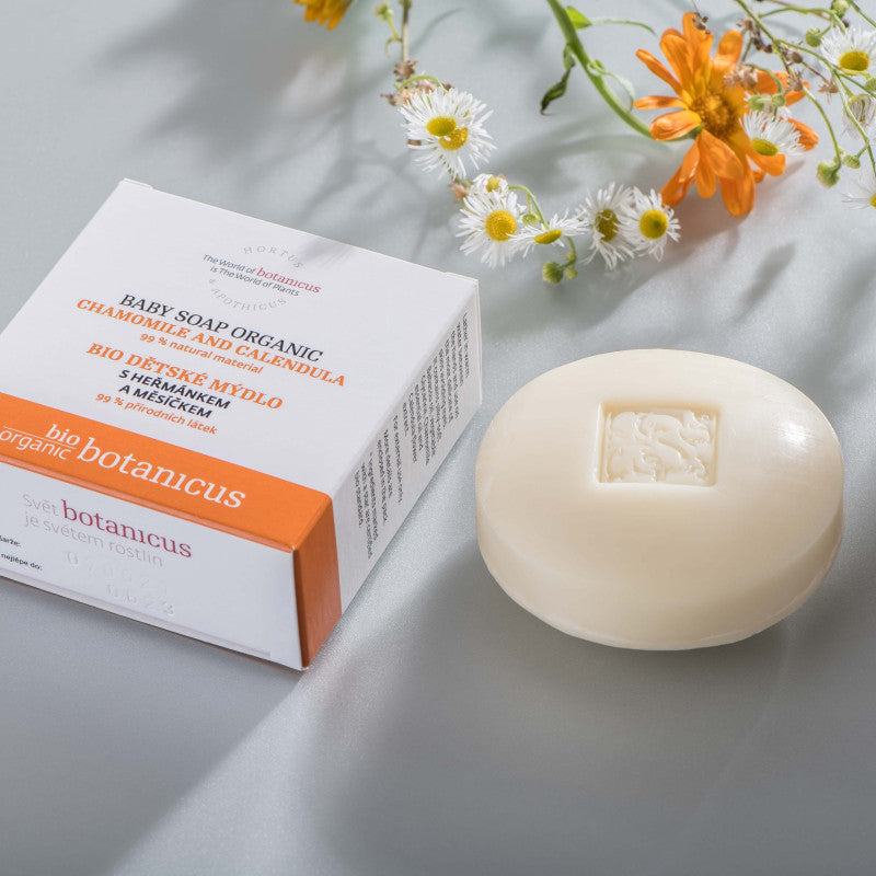 Die Bio-Babyseife mit Kamillenöl und Ringelblumenextrakt wurde speziell für die Bedürfnisse zarter Baby- und Kinderhaut entwickelt. Mit pflegendem Babassuöl, pflanzlichem Glycerin und 99 % natürlichen Inhaltsstoffen reinigt sie besonders mild und bewahrt die Haut vor dem Austrocknen.