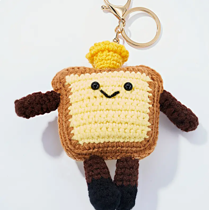 Dieser charmante gehäkelte Toast-Anhänger kombiniert handwerkliche Liebe zum Detail mit praktischer Alltagstauglichkeit.