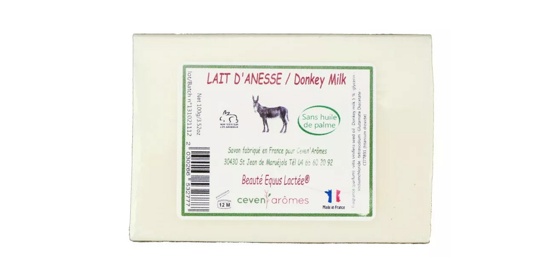 Die handgemachte Eselsmilchseife von Ceven Aromes vereint traditionelle französische Seifenherstellung mit den pflegenden Eigenschaften der Eselsmilch. Diese milde, feuchtigkeitsspendende Seife eignet sich besonders für empfindliche, trockene oder reife Haut.
