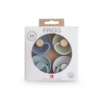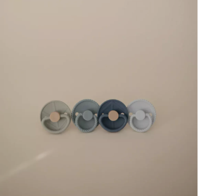 Das exklusive FRIGG 4er-Pack „Skyline Serenity“ vereint vier stilvolle Schnuller in sanften Blau- und Grüntönen, die an den Himmel und den friedlichen Übergang vom Tag zur Nacht erinnern. Perfekt für Eltern, die Design, Natürlichkeit und Sicherheit miteinander verbinden möchten.