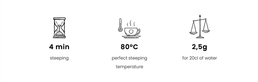Seine feinen, tiefgrünen Blätter verströmen einen großen, klaren Duft und entfalten in der Tasse eine subtile, harmonische und leicht süßliche Frische.