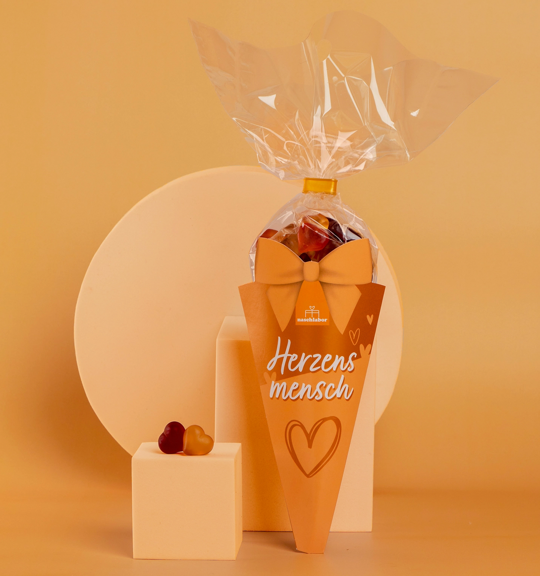 Ob zum Valentinstag, Muttertag oder einfach so zwischendurch – mit dem Herzensmensch Fruchtgummi sagst du Danke und Ich hab dich lieb ohne viele Worte. Die liebevoll gestaltete Candy Bag ist die perfekte kleine Aufmerksamkeit, die von Herzen kommt.