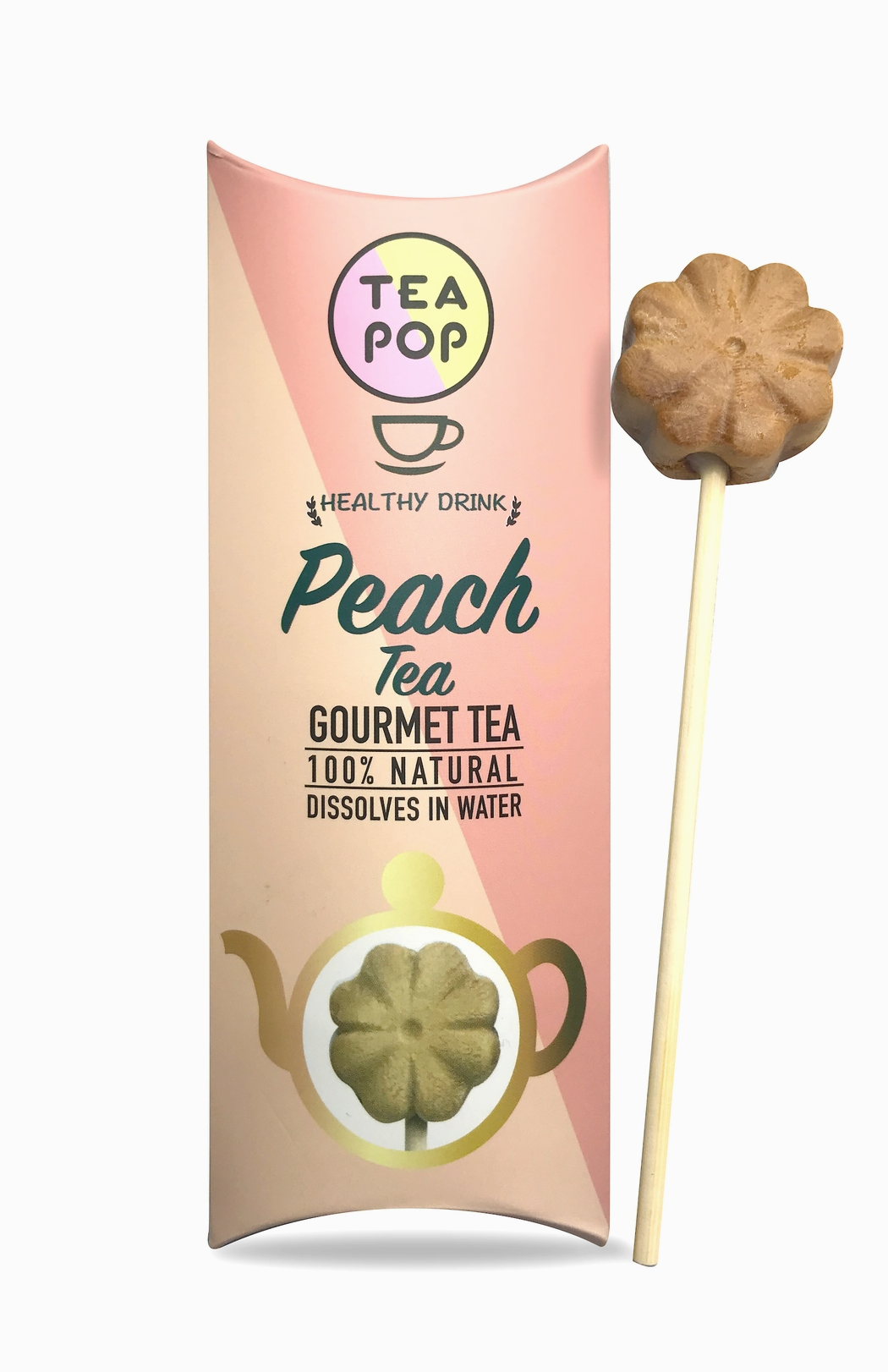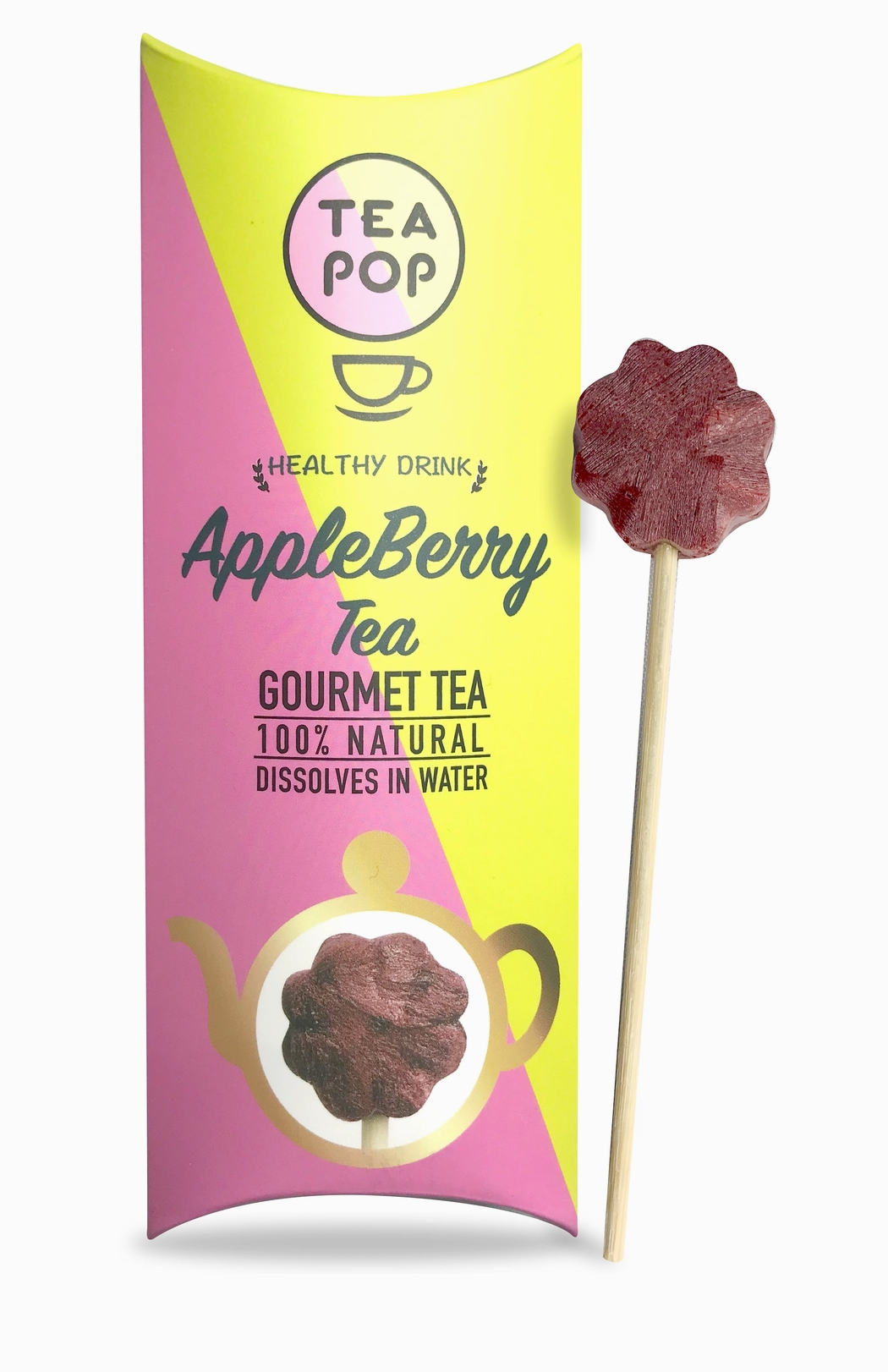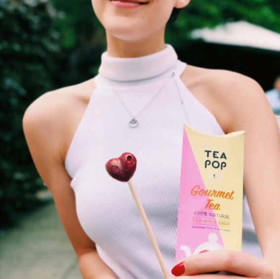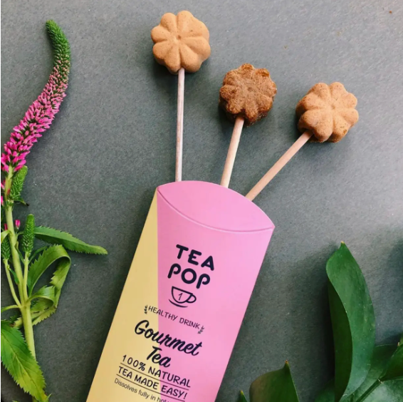 Mit Tea-Pop – Tee am Stiel erleben Sie Tee neu: 100 % natürliche Teeblätter, Früchte, Pflanzen und Kräuter werden in einer innovativen Kristallform gepresst und lösen sich vollständig in heißem oder kaltem Wasser auf.