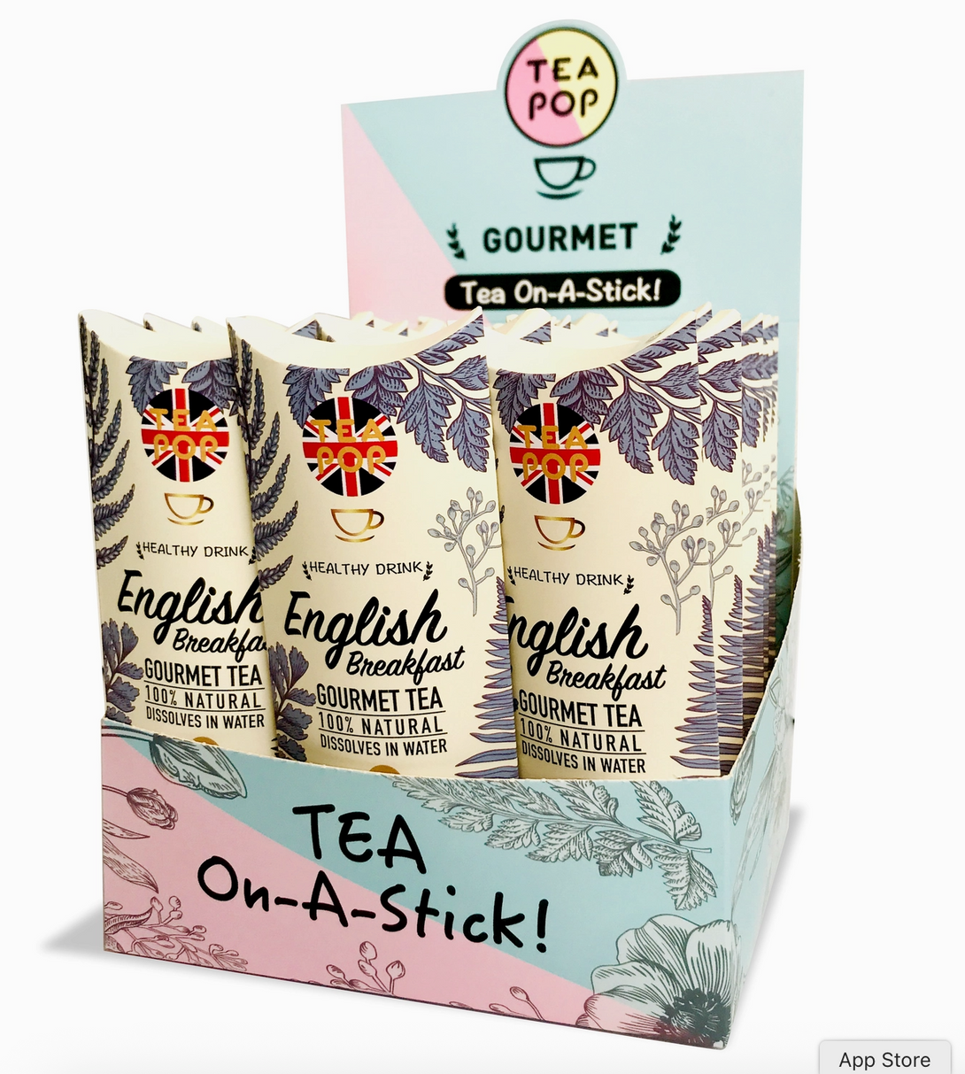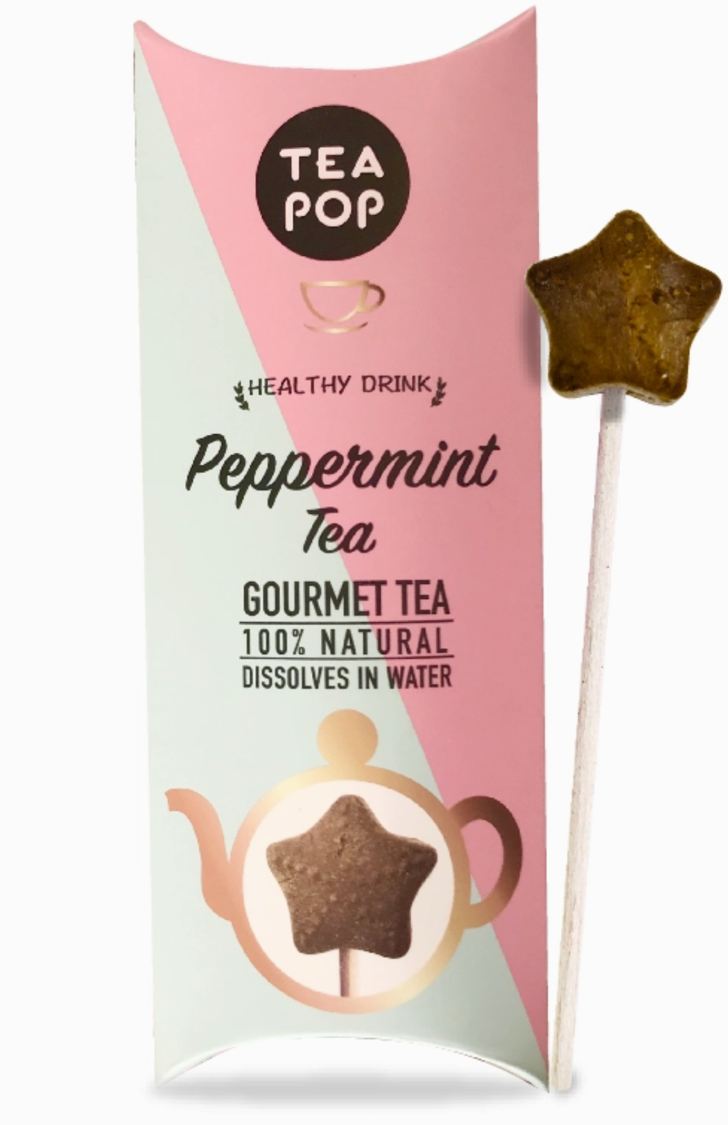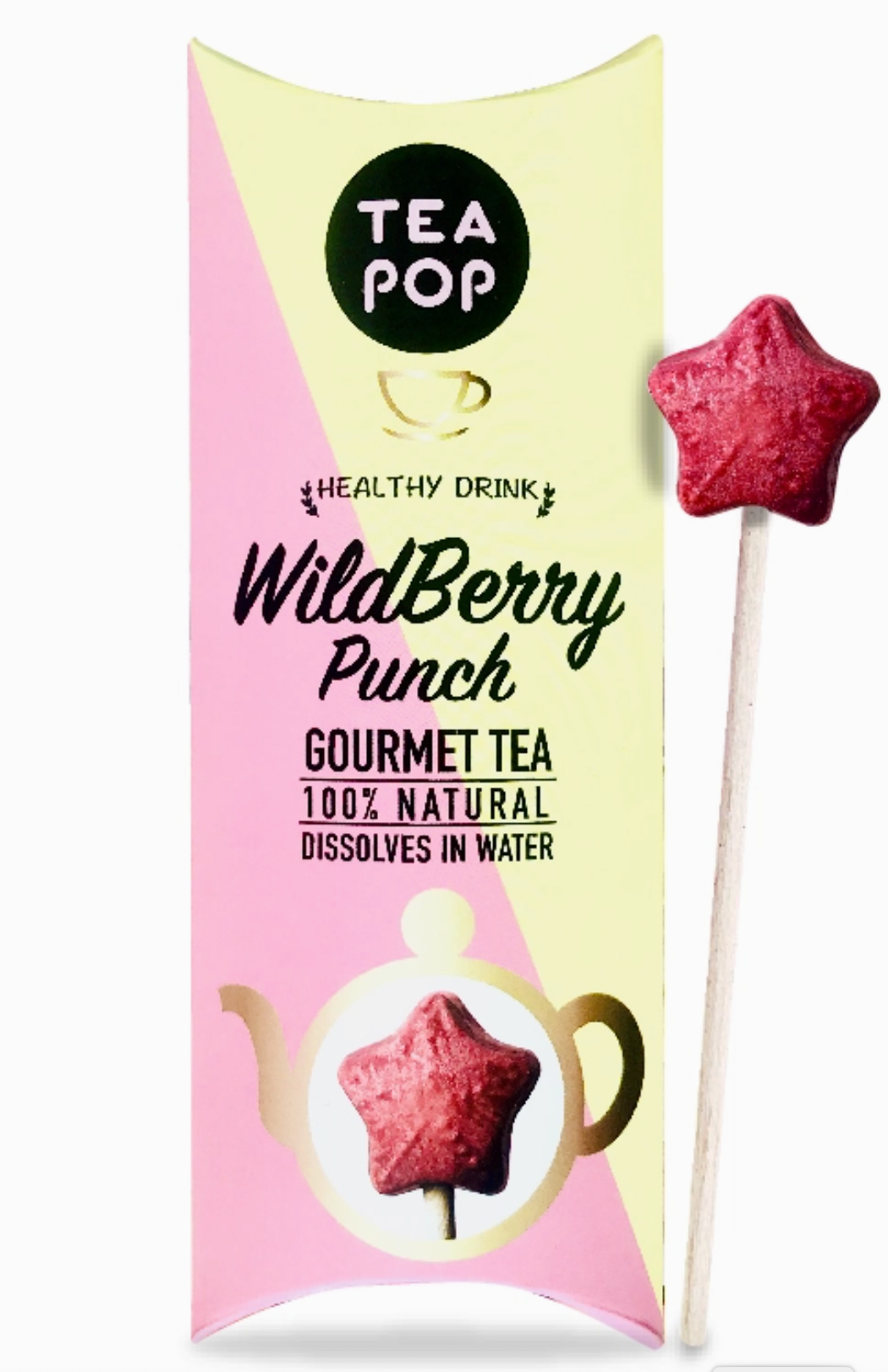 Mit Tea-Pop – Tee am Stiel erleben Sie Tee neu: 100 % natürliche Teeblätter, Früchte, Pflanzen und Kräuter werden in einer innovativen Kristallform gepresst und lösen sich vollständig in heißem oder kaltem Wasser auf.