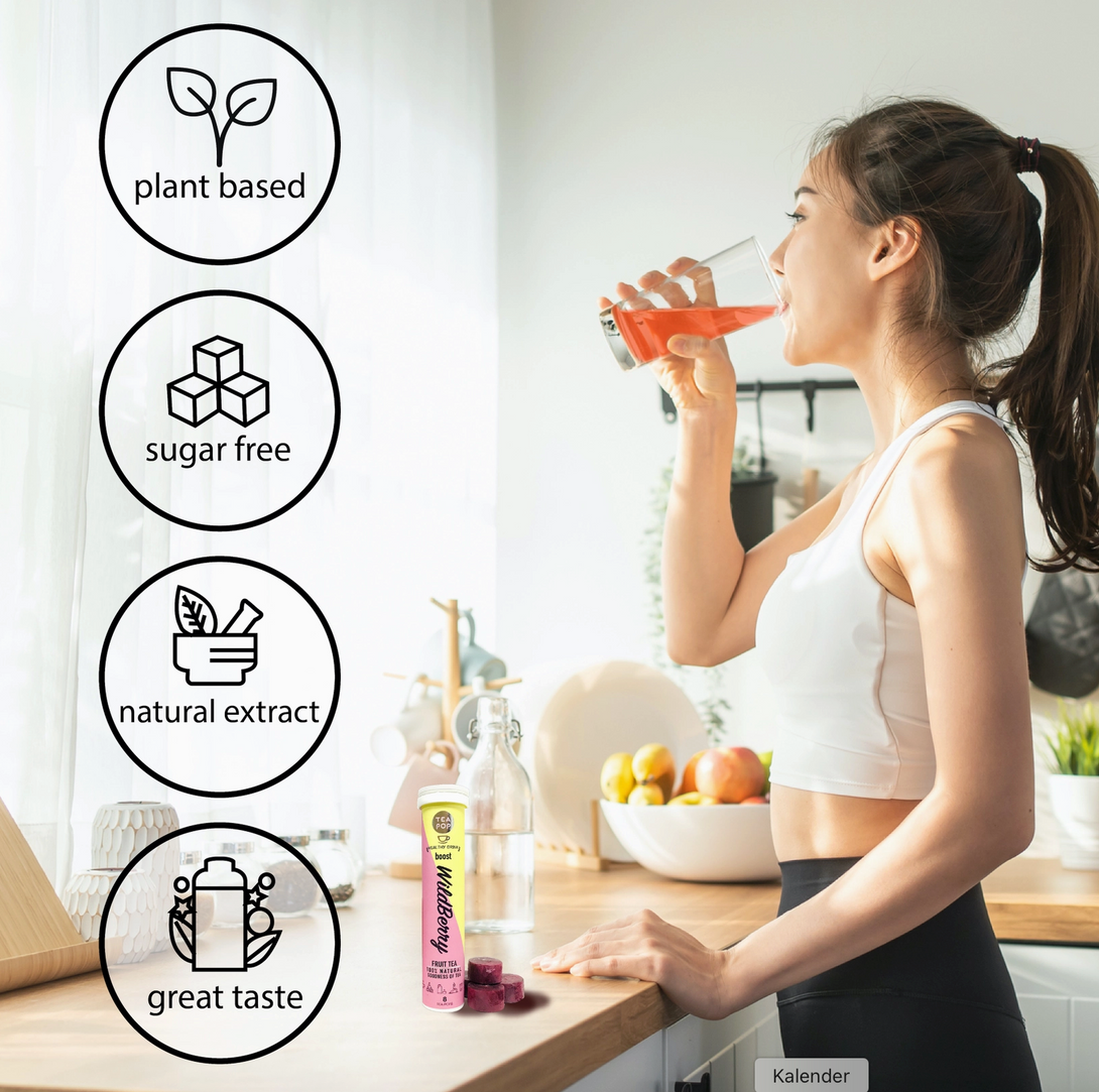 Neu, stylish und unglaublich praktisch: Der Tea-Pop am Stiel vereint die volle Kraft aus 100 % natürlichen Teeblättern, Früchten, Pflanzen und Kräutern in einer völlig neuen Form. Einfach ins Wasser geben – der Stick löst sich vollständig auf und verwandelt sich in ein intensives, fruchtiges Tee-Erlebnis.