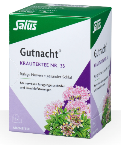 Der Gutnacht-Kräutertee Nr. 33 ist eine ausgewogene Kräutermischung zur natürlichen Unterstützung bei nervöser Unruhe und Einschlafstörungen.