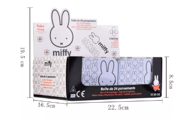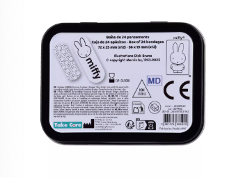 In der wiederverwendbaren Metallbox findest du 24 Pflaster in fröhlichen Miffy-Motiven, die nicht nur schützen, sondern auch sofort gute Laune bringen.