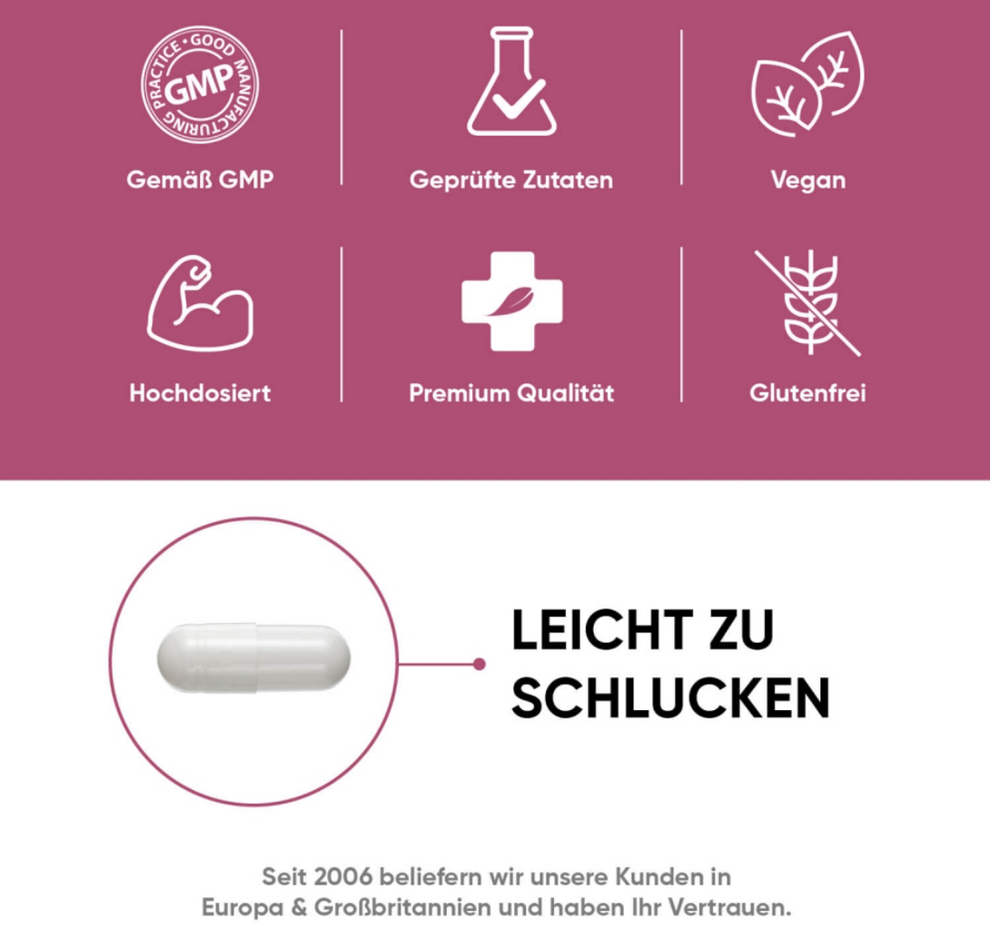 Besonderheiten: Hochdosiert, frei von Gluten & Laktose