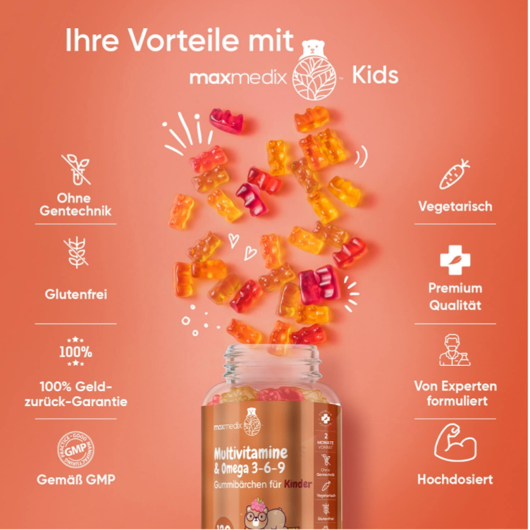 Dosierung: 1–2 Gummies täglich (je nach Alter)