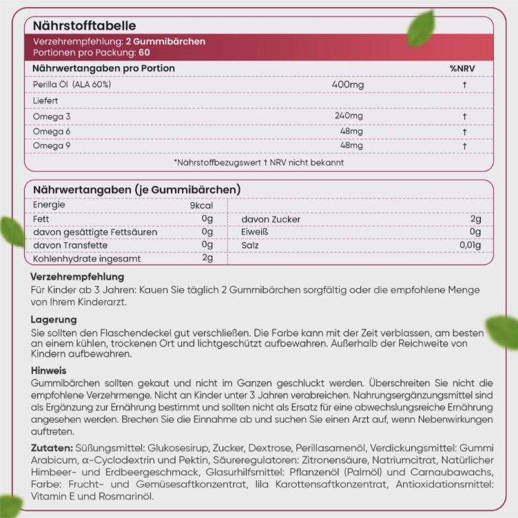 Inhalt: 1–2 Gummibärchen pro Tag (abhängig vom Alter)