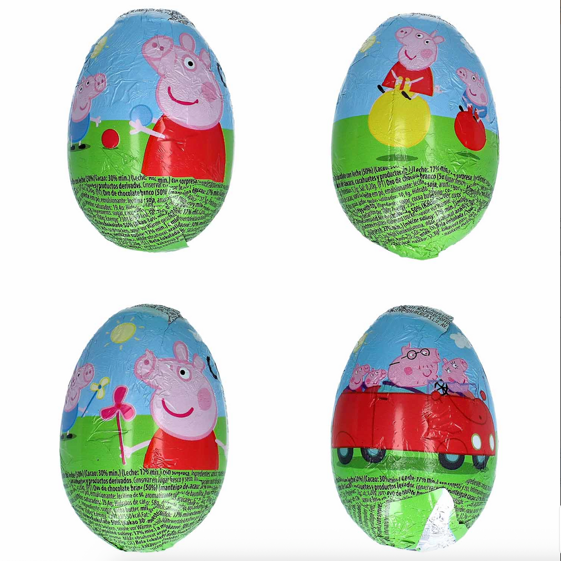 Dieses Schweinchen ist einfach Kult! 🎉 Das Peppa Pig Schoko-Ei ist die süße Überraschung für kleine und große Fans der beliebten Zeichentrickfigur. Das Ei besteht zur Hälfte aus feiner weißer Schokolade und zur Hälfte aus zarter Vollmilchschokolade. Im Inneren wartet eine kleine Überraschung zum Spielen, die Kinderaugen garantiert zum Leuchten bringt. Mit drei verschiedenen Motiven sorgt es für Sammel- und Naschspaß zugleich – ein Must-have für alle Peppa Pig Liebhaber!
